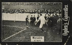 But what happens when a Secondary card is released before the main profile card? That is exactly what happened for a historic association footballer called Billy Meredith. Ogden’s cigarettes in 1901 released card entitled “Meredith at Work” which depicts Billy Meredith in action kicking a corner kick. Billy Meredith only received a profile card from a different cigarette company (one from Wills and one from Clarke) set the following year in 1902. This puts a collector in an interesting conundrum. Which should be considered the rookie?