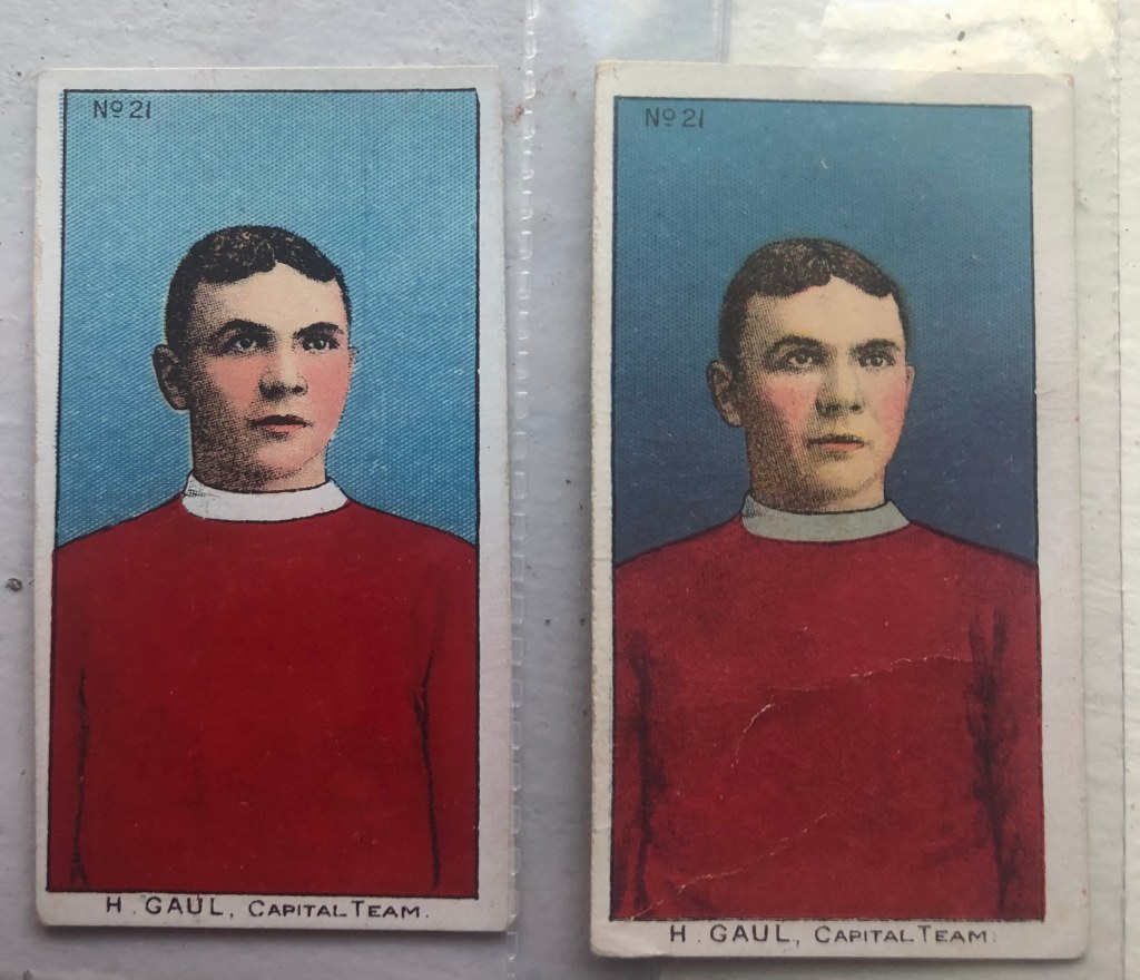 Card companies also make mistakes and mislabel cards. Ogden’s General Interest mislabel West Bromwich legend Billy Bassett and Scottish Fooballer Jack Robertson. Most would agree that the picture of Bassett are their true cards despite the mislabeled name.