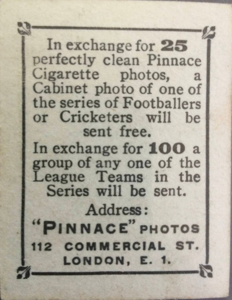 During the World War 1, understandably not many football cards were produced. F &J Smith produced a set in 1917; however, things really started to get back to normal around 1920 when Godfrey Phillips produced its first Pinnace cards in what would prove to be a monster set. The cards in this set were issued between 1920 -1923 although they have been notoriously difficult to date. Several other brands such as Gem, Magnet, Boys’ Friend and DC Thomson would shortly after start issuing their own cards.