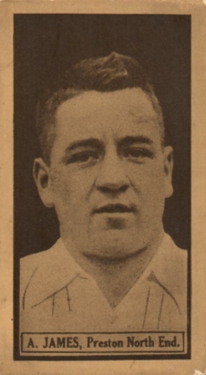 The D.C. Thomson Rover This Year’s Top Form Footballers was issued in early 1927. The James” card was included in Issue #258, on 26, March 1927. James also is featured in a card (#70) in the 1927 J.A. Pattreiouex Footballers series. However, this set was issued in two series: 1) with a blue caption first 50 cards 2) a brown caption for all 100 cards. As James is part of the later series, it is likely that this card post-dates the D.C. Thomson Rover card. James also had a card issued in the Player’s 1927 Caricatures by MAC set.