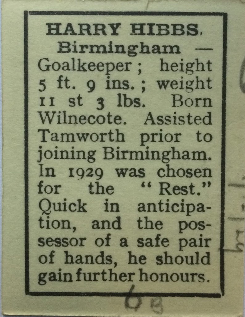 Hibb’s rookie card is from a relatively scarce pairs set from the Topical Times in 1929. The Hibbs card shown above is a single cut but was originally issued paired with Derby legend Sammy Crooks. The Lambert and Butler card from the following year in 1930 appears to be painted based upon this image.