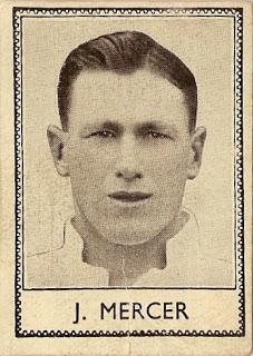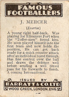 These panel portrait cards quite unusual due to their large size which measure 250 x 94mm. Topical Times also issued similar cards in black and white as well as miniature type cards; however, Mercer does not feature in these issues. Mercer was only 22 years old at the time this card was released.