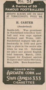 Rookie Card: Year – 1934 – Manufacturer – Ardath Tabacco – Set – Famous Footballers- Card #34