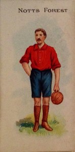 Despite the sizeable overlap between the Guinea Gold and Circus Girl series, there were also some cards added to the Circus Girl set for players that were up-and-coming talents in the 1896/97 season such as Villa’s top scorer Fred Wheldon. Note, the picture was taken from Reinhold Thiele (post May 1896) with Small Heath prior to the 1896-97 season at Aston Villa.