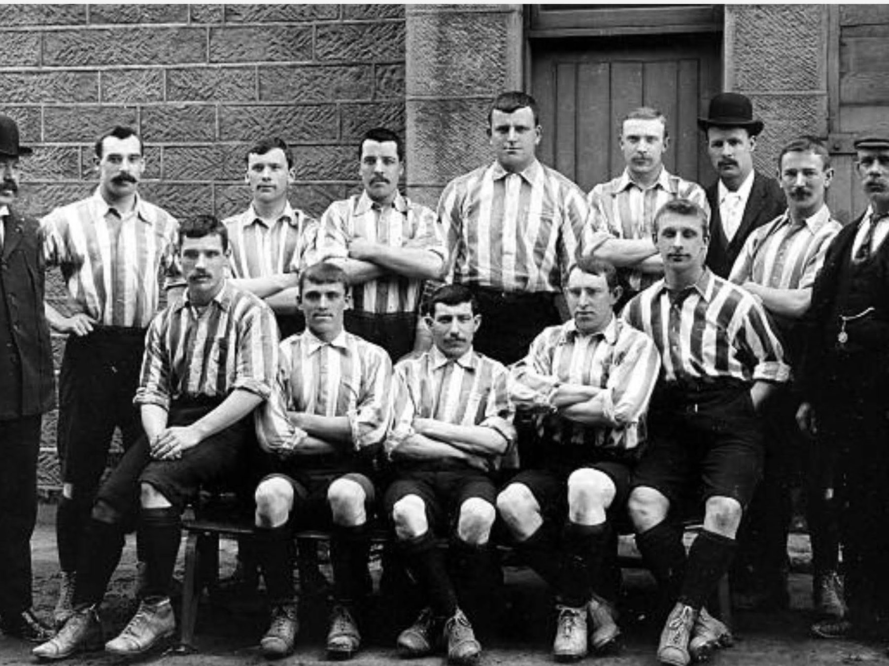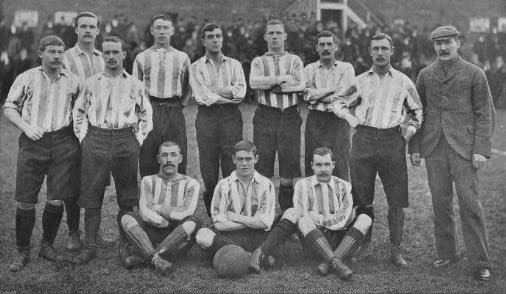 The Sheffield United players pictured in Footballers and Cyclists series are taken from a team photo shoot by Jasper Redfern. The Sheffield team picture which won the FA cup on April 15, appeared in the Sketch magazine in April 19 1899.