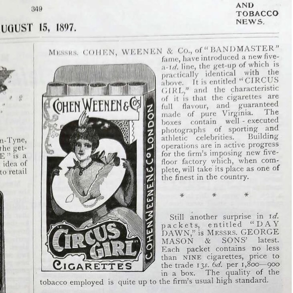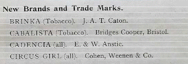 The Gaiety Theatre in London produced a play called the Circus Girl in December 1896 that went on to enjoy considerable success. Shortly after in March 1897, Cohen and Weenen decided to take advantage of the success of play and trademarked a new brand of cigarettes by the same name.