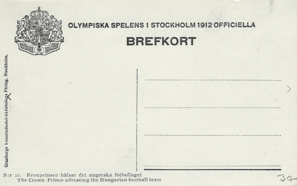 Luckily, as Hungary played at the 1912 Olympics, Schlosser appears on postcards (Brefkort) that were issued for the Swedish Olympics of the Hungarian National team.