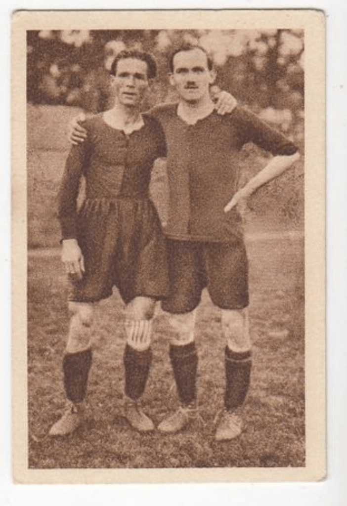 This is the only cigarette card I am aware of that exists of Imre Schlosser. It is a fairly accessible card from the 1932 German Monopol set, where he is pictured with the Czech multisport athlete Korel Kozeluh, likely from their time together at Weiner AC in Austria.
